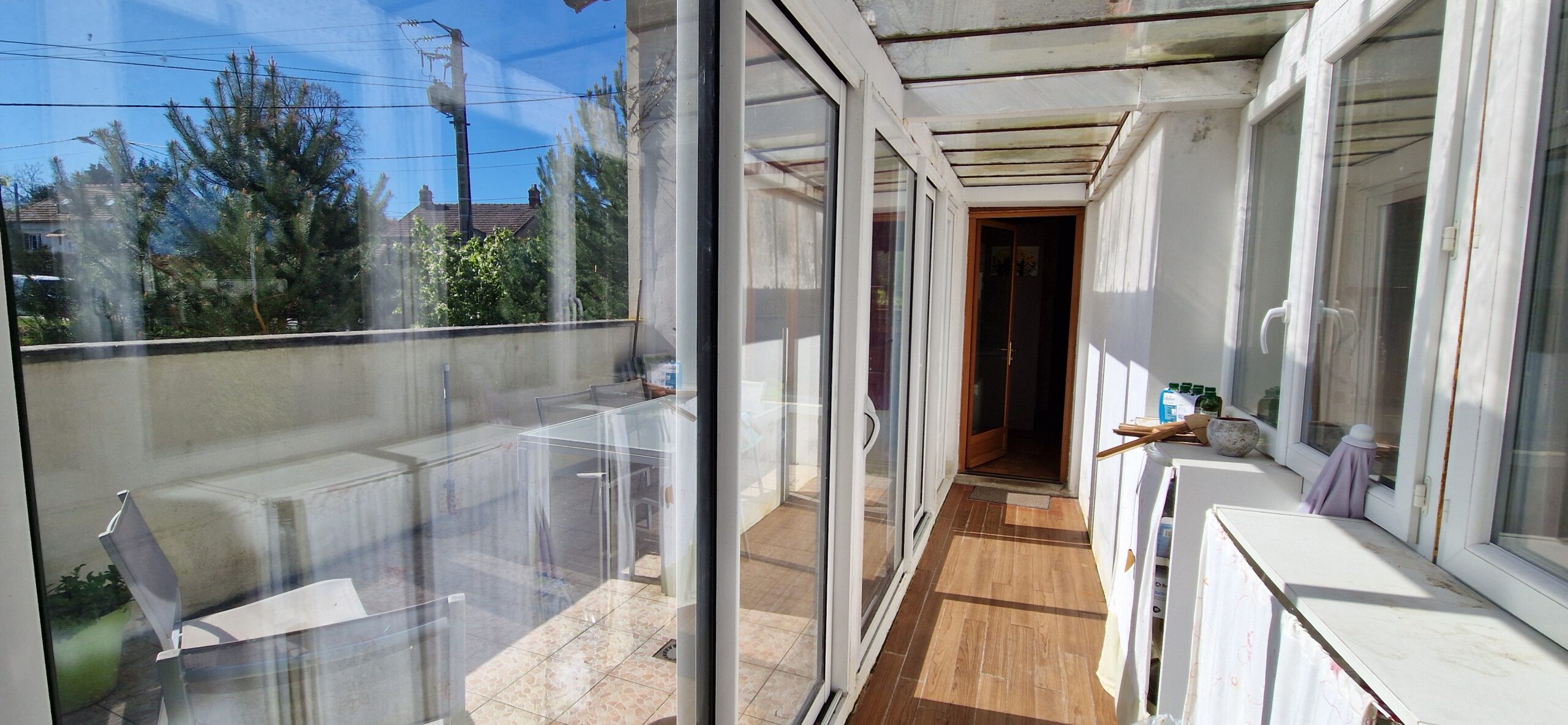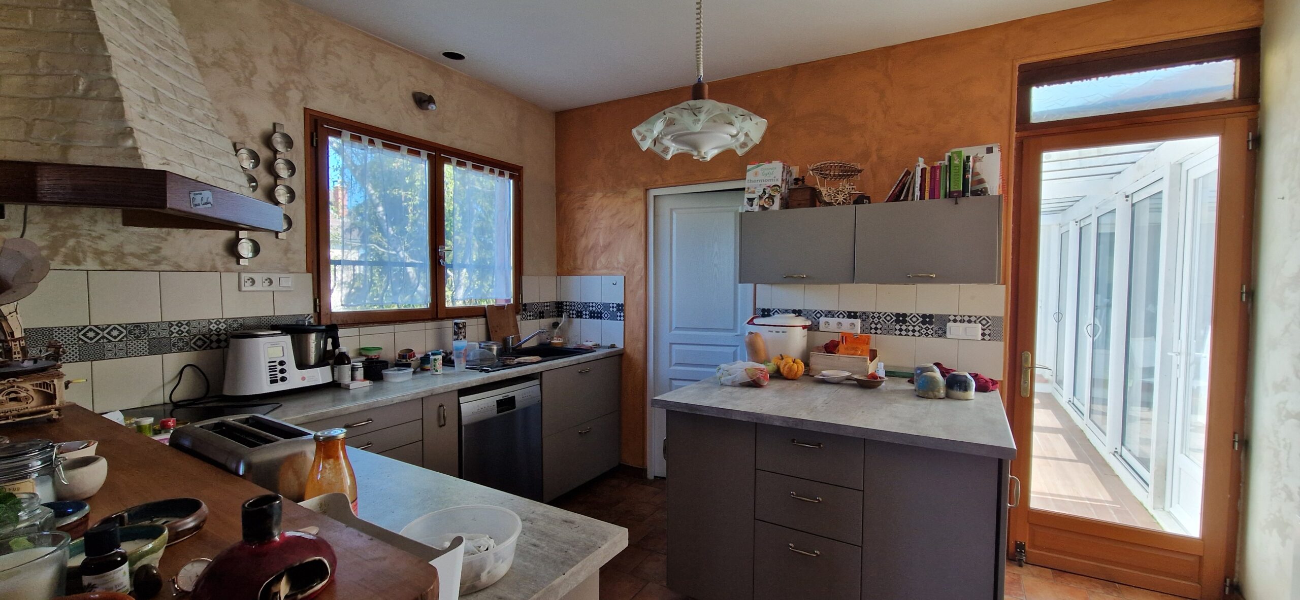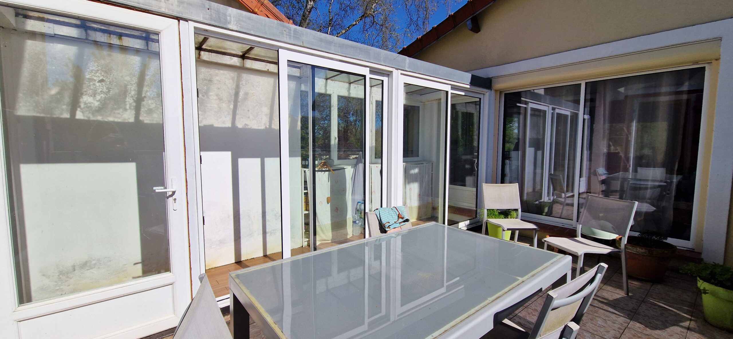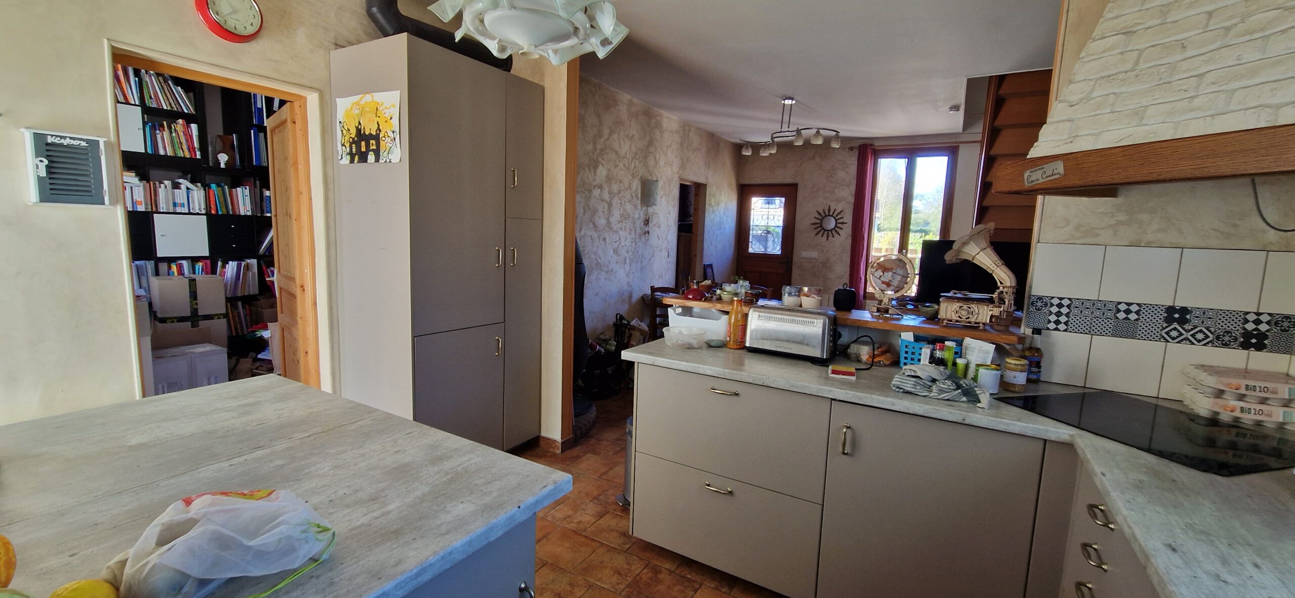Maison ancienne de 149 m² habitables, édifiée sur sous-sol total composé de 3 pièces comprenant au rez-de-chaussée : entrée sur salon avec poêle à bois, deux chambres, salle de bains – toilettes, cuisine aménagée équipée ouverte, à la suite extension composée d’un couloir qui dessert une terrasse et le séjour double. En rez-de-jardin : atelier (chambre possible).