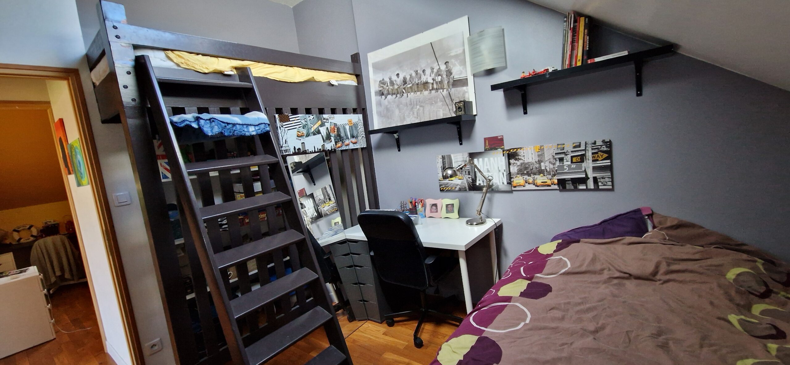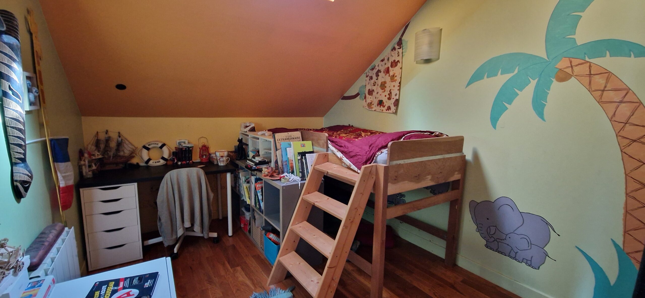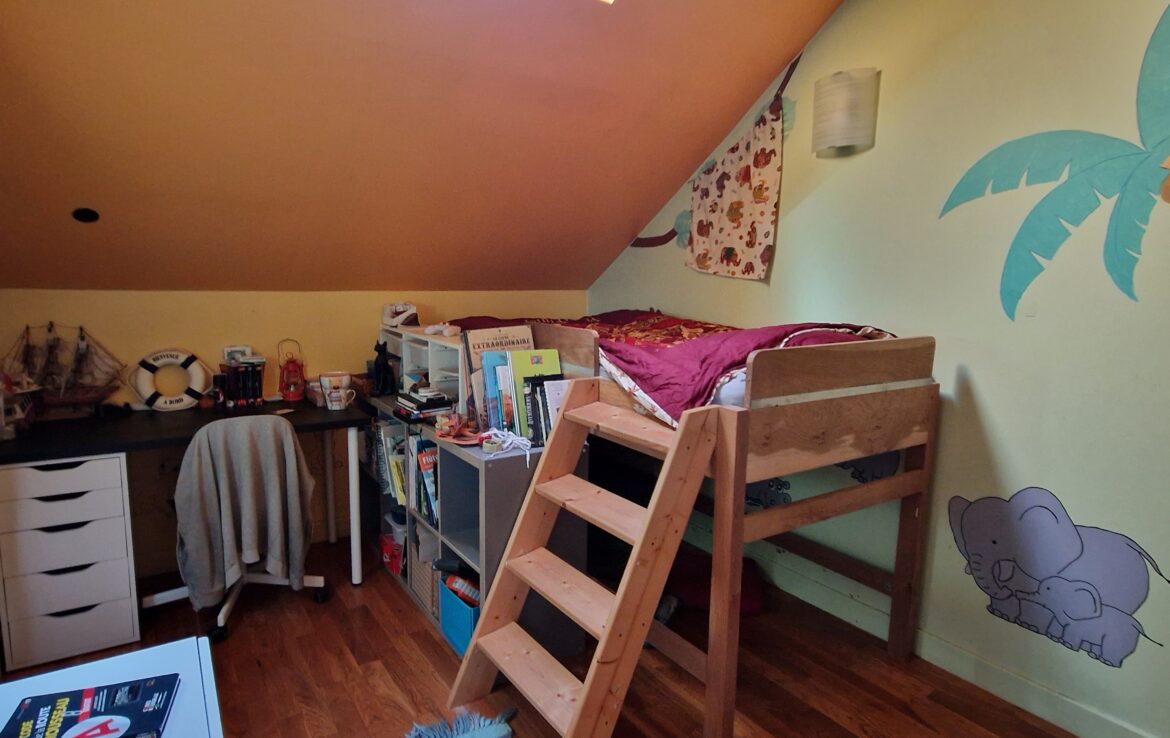 A l’étage de la maison : un palier dessert salle d’eau-toilettes, dressing, trois chambres dont une avec mezzanine.