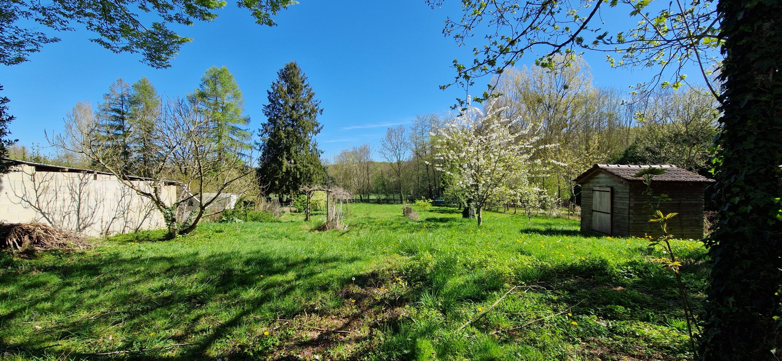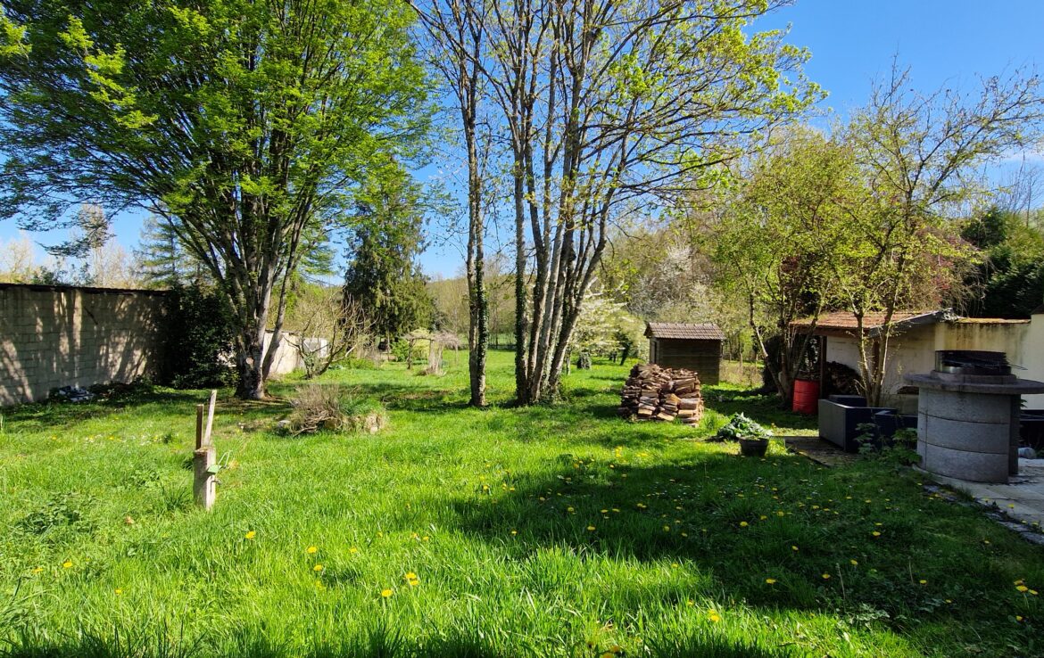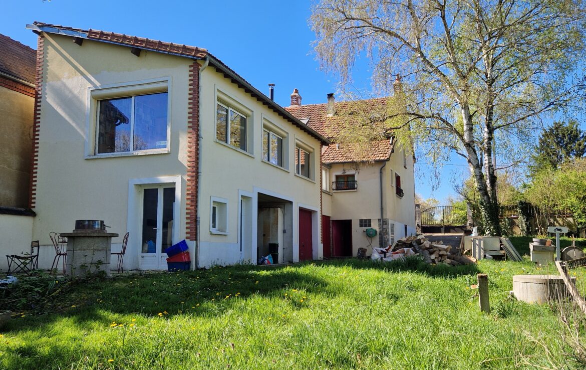 Grand jardin en bord de l’Orvanne, deux garages et atelier.