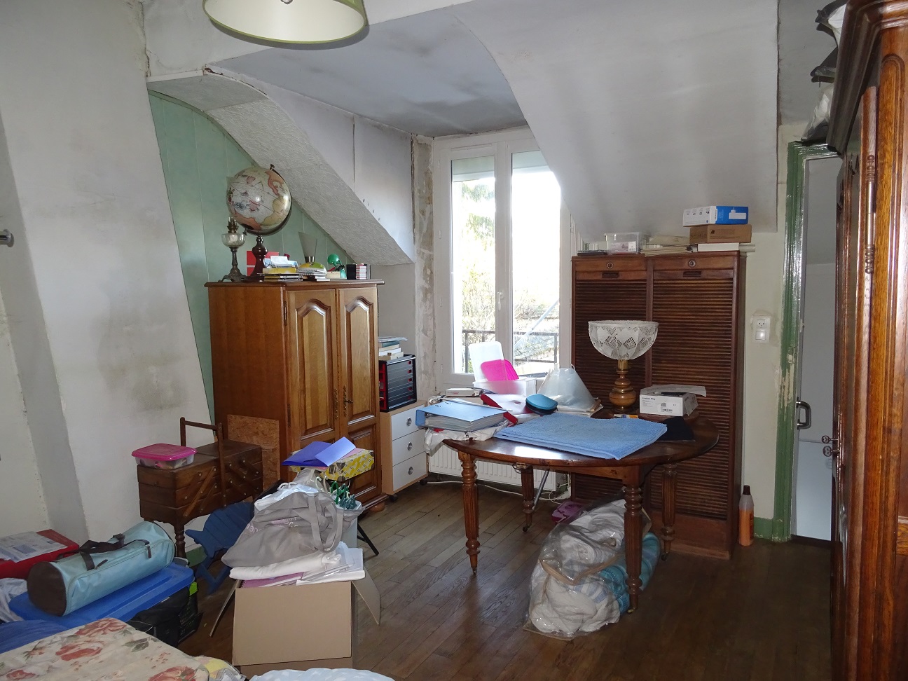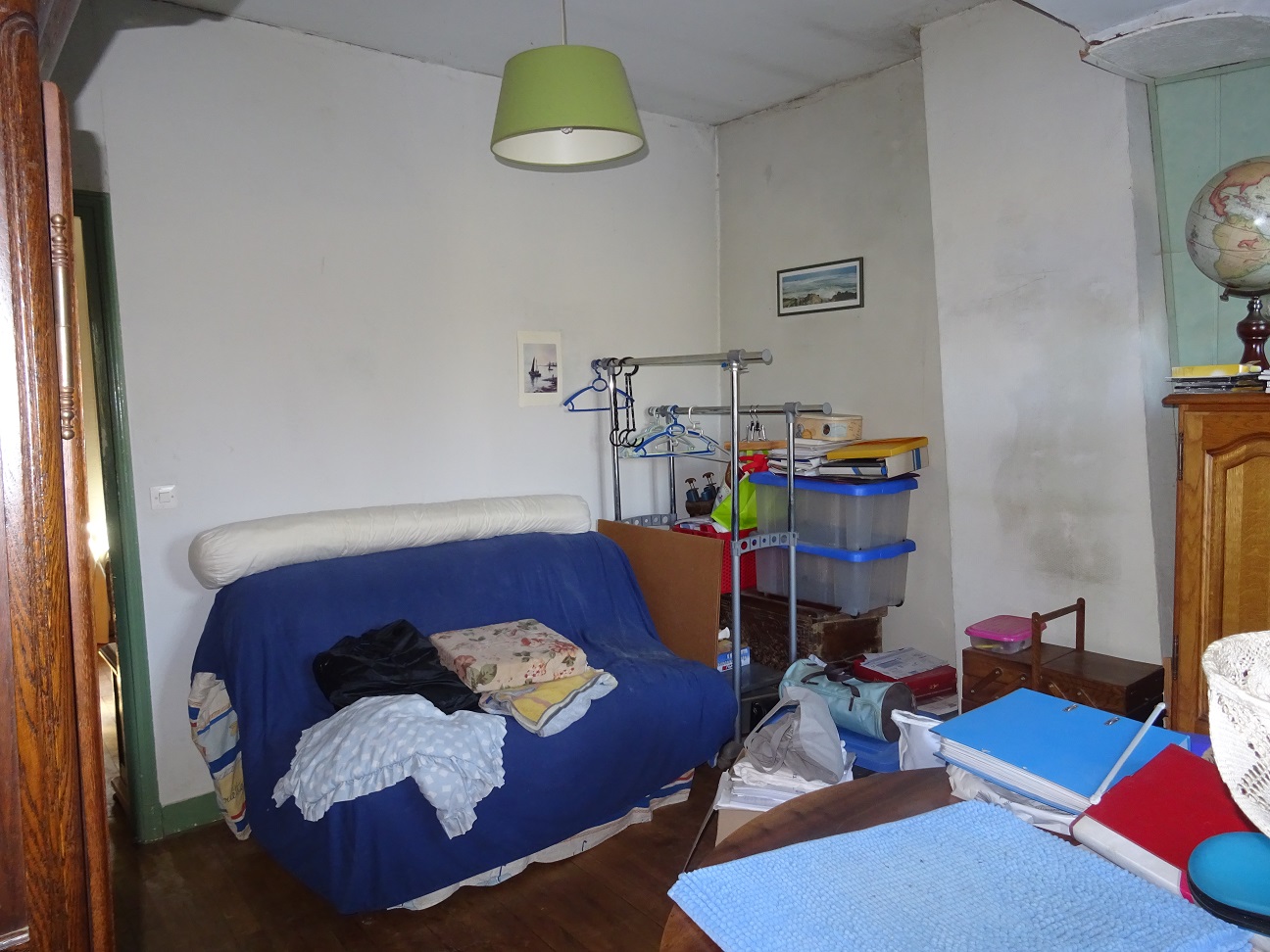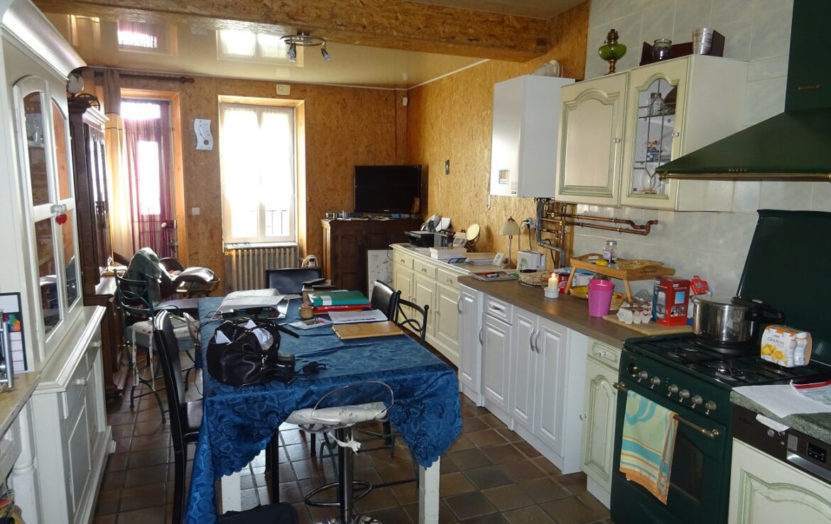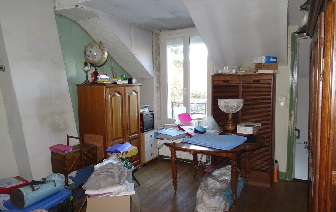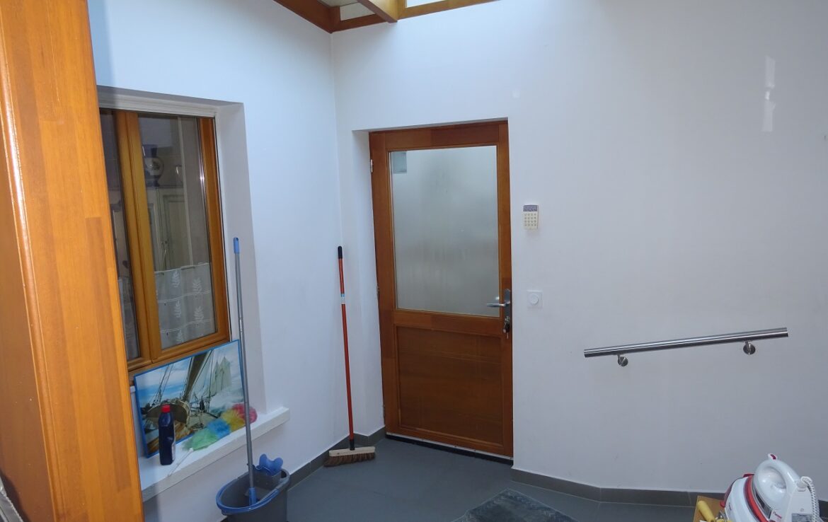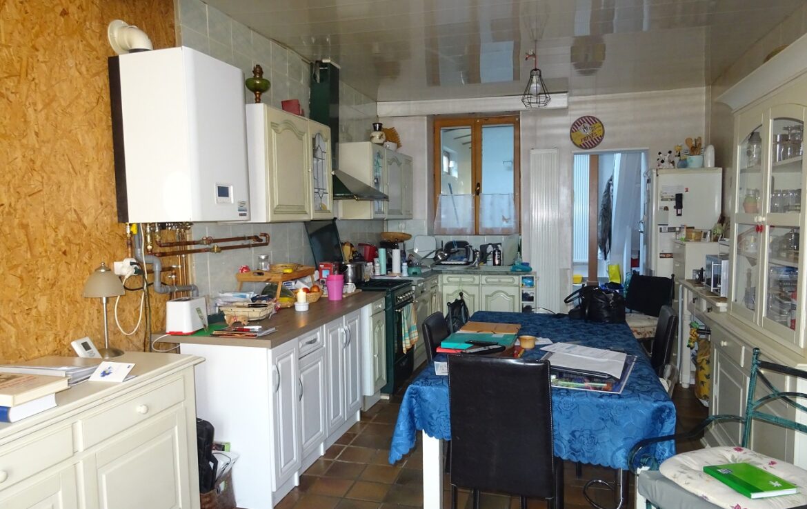 Maison ancienne comprenant au rez-de-chaussée : entrée, grande cuisine avec espace dinatoire, couloir salle d’eau – toilettes, salon sur jardin. A l’étage : deux chambres en enfilade. Jardin en partie clos de murs. Toiture refaite, Pompe à chaleur neuve et panneaux photovoltaïques.