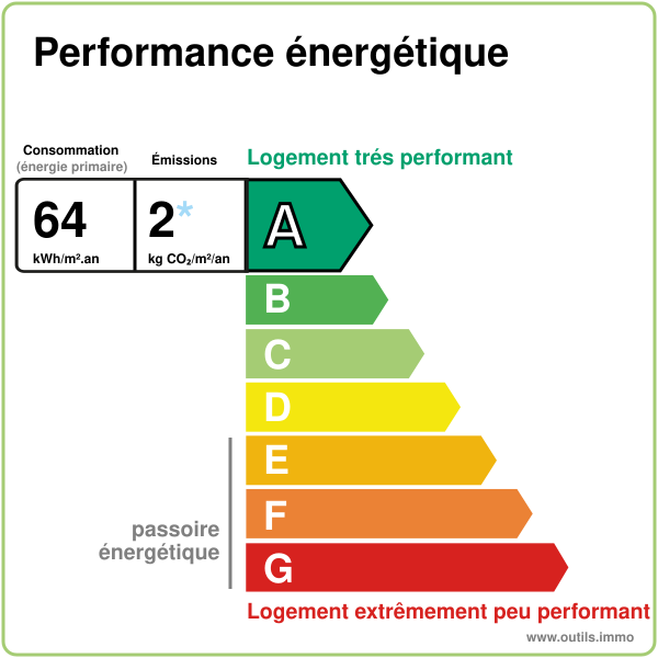 DPE: 64 Kwh/m²/an (A)